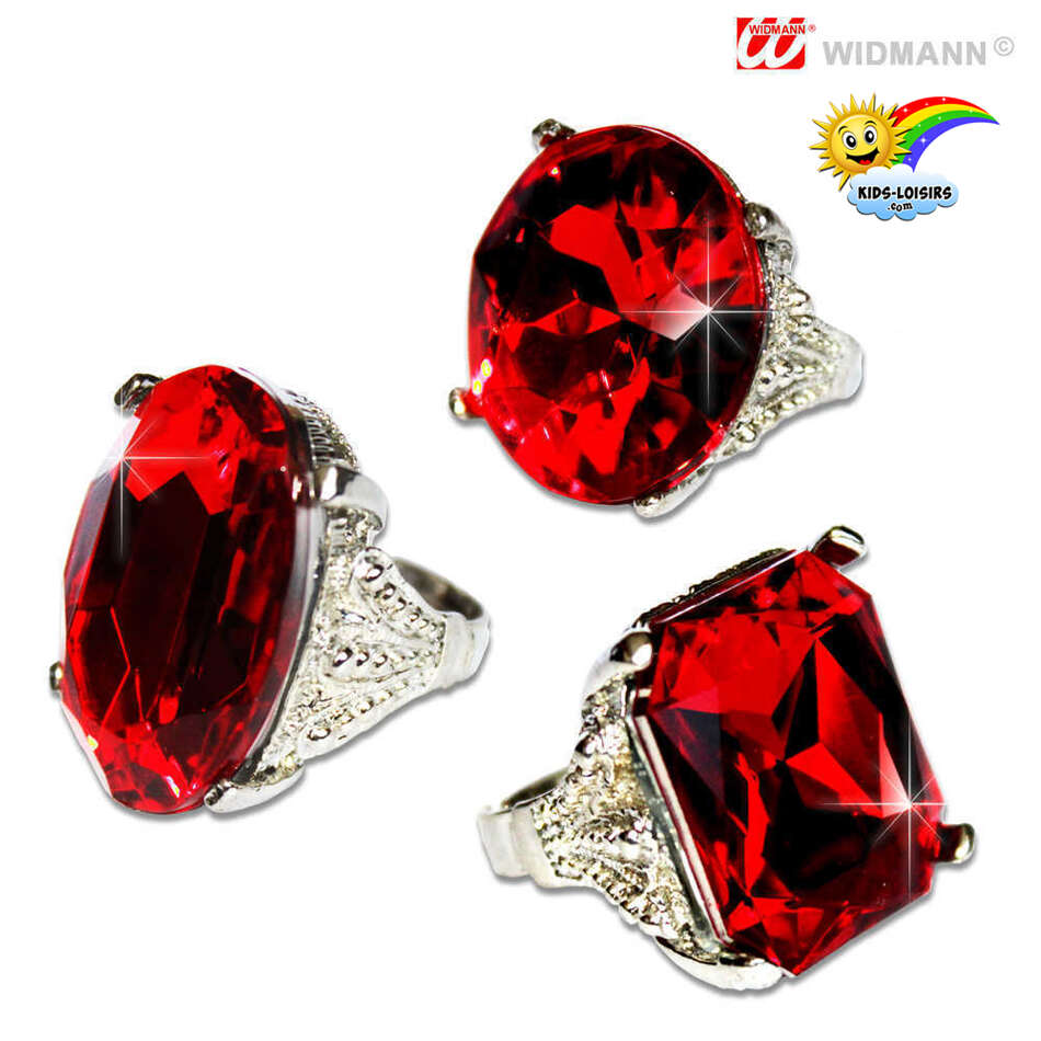 bague gros rubis rouge fausse pierre précieuse diamant joyaux bijoux richesse carats géant énorme caillou facettes brillantes étincelante briller bagouse anneau sertie accessoire de déguisement bling bling doigt rouge écarlate reine forme carrée ovale ronde