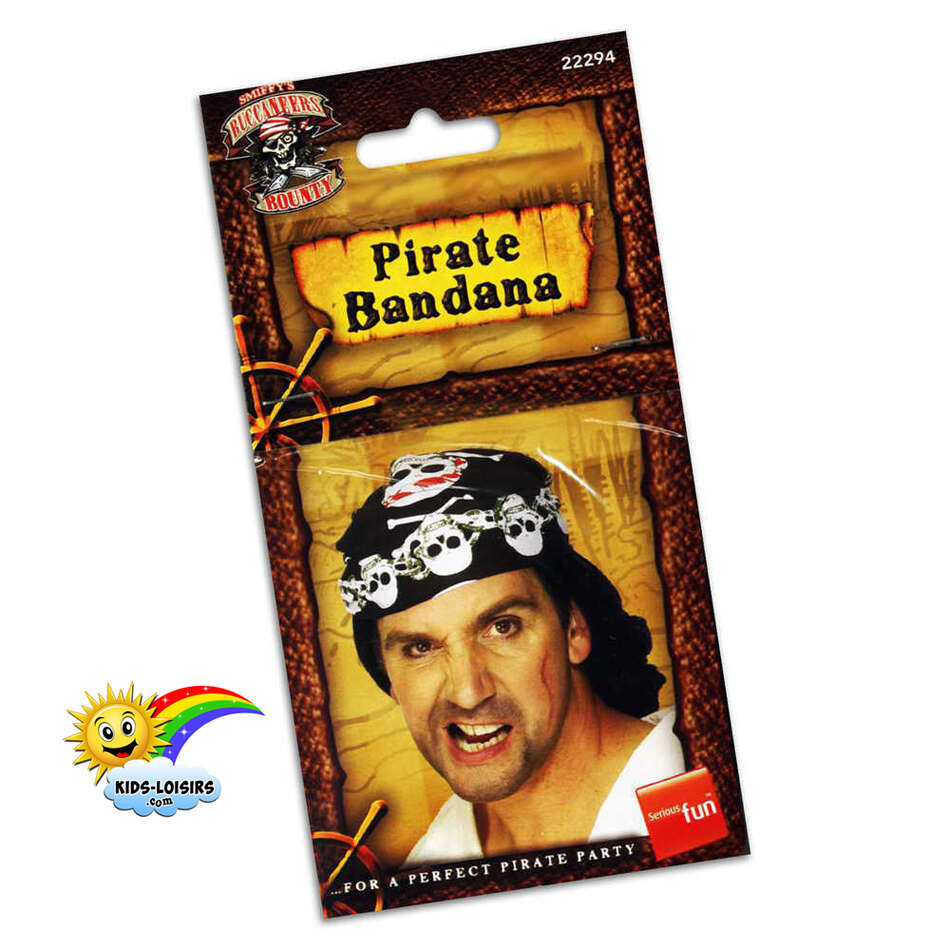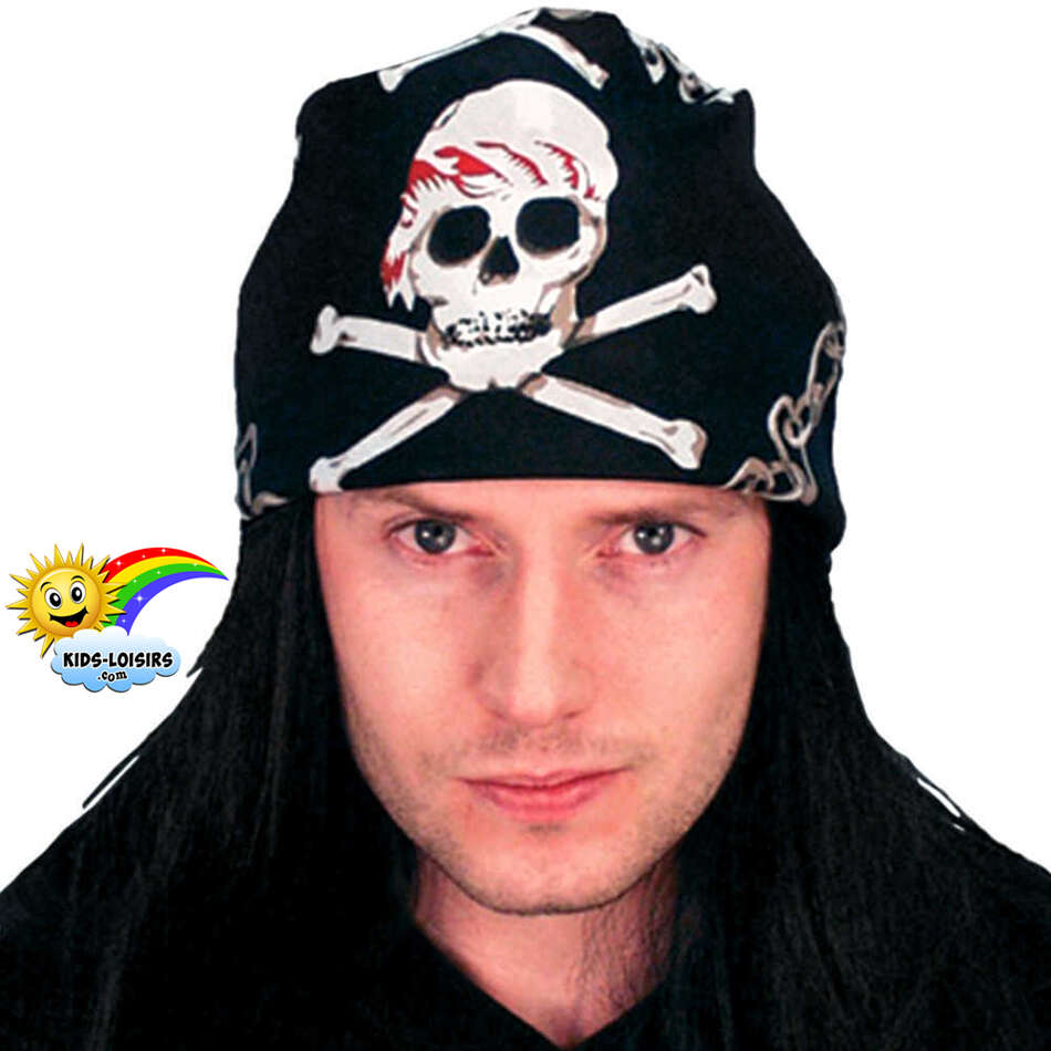 bandana de pirate à têtes de morts foulard bandeau madras carré de tissu noir blanc corsaire flibustier jack sparrow capitaine crochet bandit squelette accessoire de déguisement