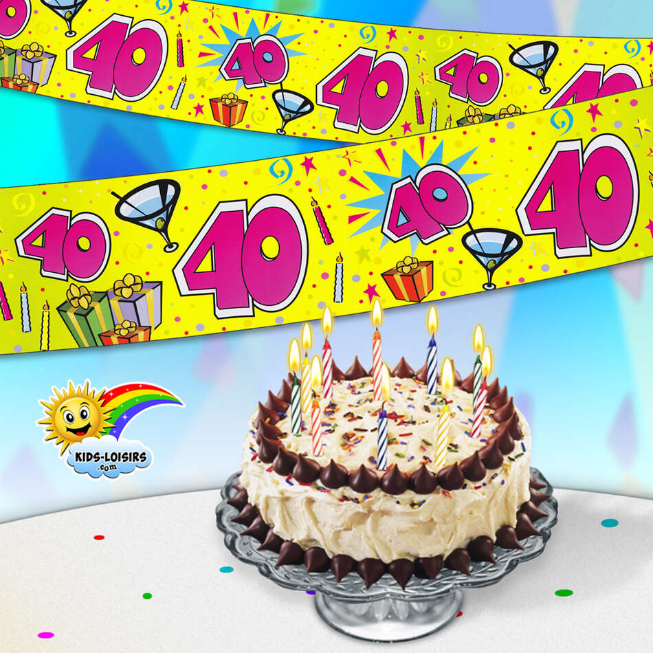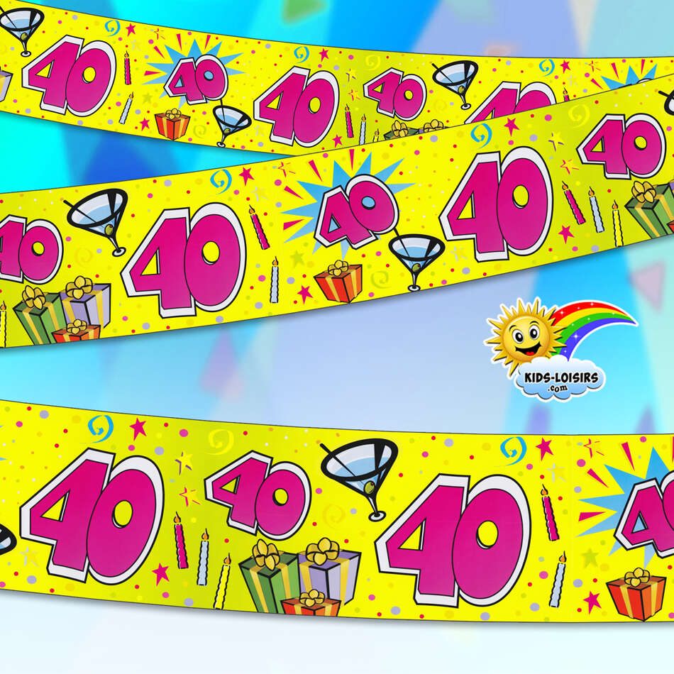 Bannière couleur anniversaire pour les 40 ans, festive et joviale, elle sera du plus bel effet, à fixer à l’aide de punaises, (matière carton glacé, hauteur 16 cm, longueur 2,44 mètres, imprimée sur une seule face, prix unitaire).