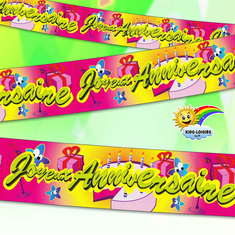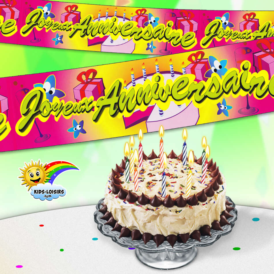 Bannière couleur portant l’inscription « joyeux anniversaire », festive et joviale, elle sera du plus bel effet, à fixer à l’aide de punaises, (matière carton glacé, hauteur 16 cm, longueur 2,44 mètres, imprimée sur une seule face, prix unitaire).