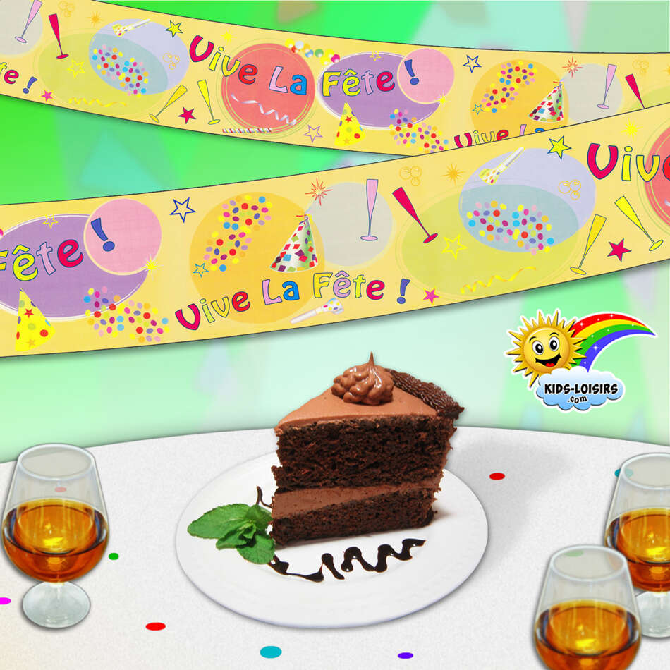 Bannière portant l’inscription « vive la fête », colorée et joviale, elle sera du plus bel effet, à fixer à l’aide de punaises, (matière carton glacé, hauteur 16 cm, longueur 2,44 mètres, imprimée sur une seule face, prix unitaire).