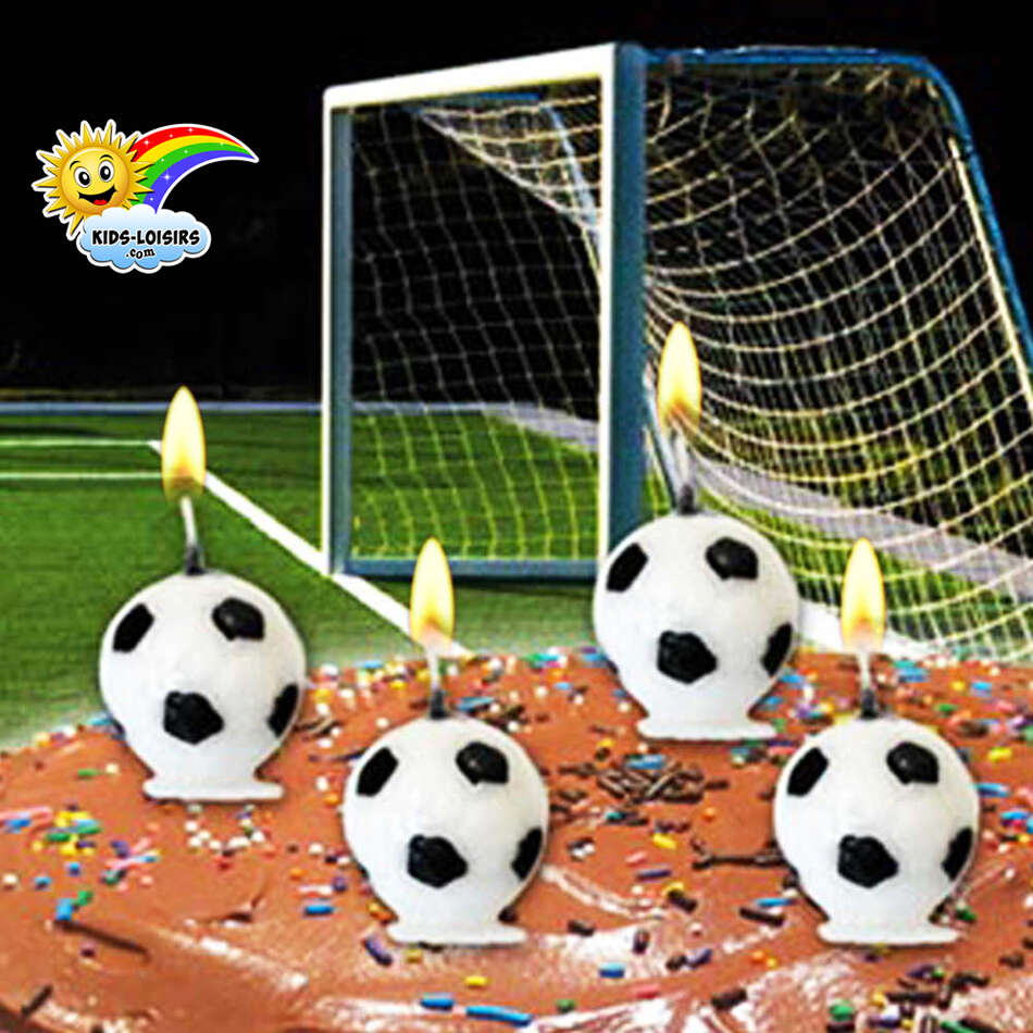 bougies en forme de ballons de football les bougies du gâteau d’anniversaire annif décoration noir blanc décors fêter enfants supporters équipe match sport marquer buts club stade fan cadeaux copains amis famille photo souvenir original sensationnel jolies