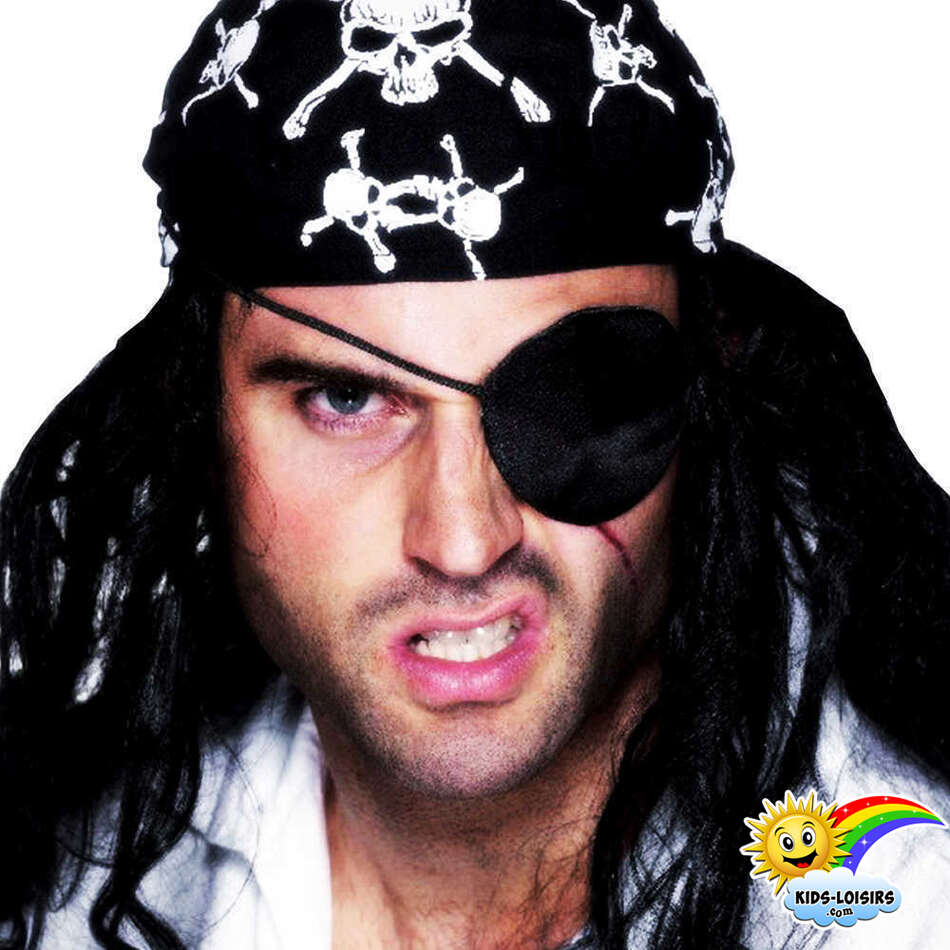 cache-oeil de pirate corsaire borgne satin noir accessoire de déguisement tête de mort pirates des caraïbes jack sparrow masquer oeil poche bandit flibustier piraterie bateau voilier haute mer