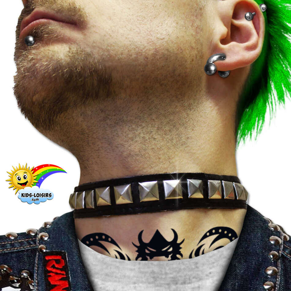 collier cuir clous studs pointes métalliques carrés punk rockeur emo gothique look style mode accessoire déguisement studded choker noir rebelle dur à cuire bijou de tour de cou
