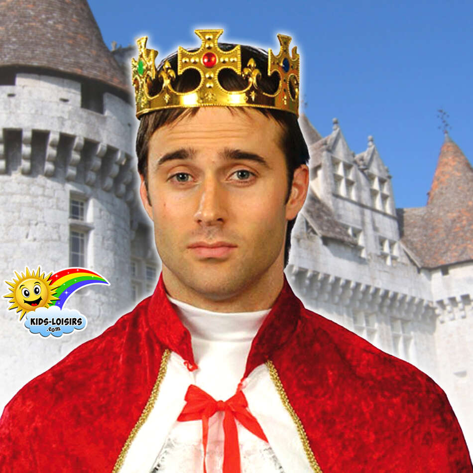 couronne de roi or dorée dorures pierres incrustées bijoux diadème accessoire de déguisement déguiser royauté royaume prince charmant monarchie sa majesté château châtelain ornement monarque médiéval souverain rubis saphir
