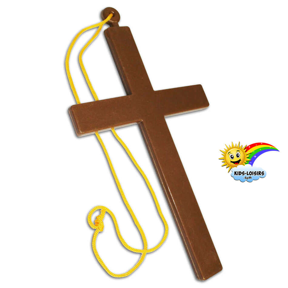 fausse croix de l’exorciste crucifix factice christ bois plastique curé prêtre bonne soeur moine religion église foi chrétienne accessoire de déguisement se déguiser jésus christ dieu pasteur religieuse nonne catholique théâtre sainte bible gothique