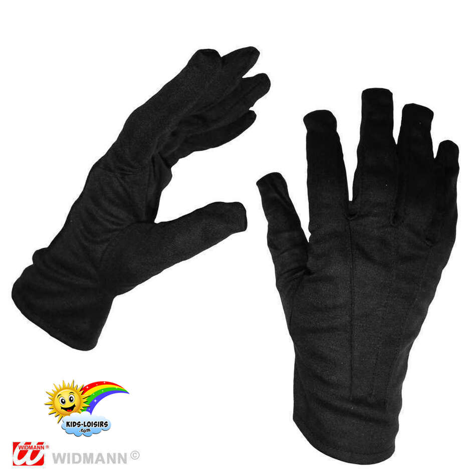paire de gants noirs pur coton qualité supérieure luxe deluxe magie magicien prestidigitateur clown mime illusionniste assistante spectacle représentation numéro scène élégant distingué galant chic raffiné accessoire de déguisement déguiser bourgeois dandy