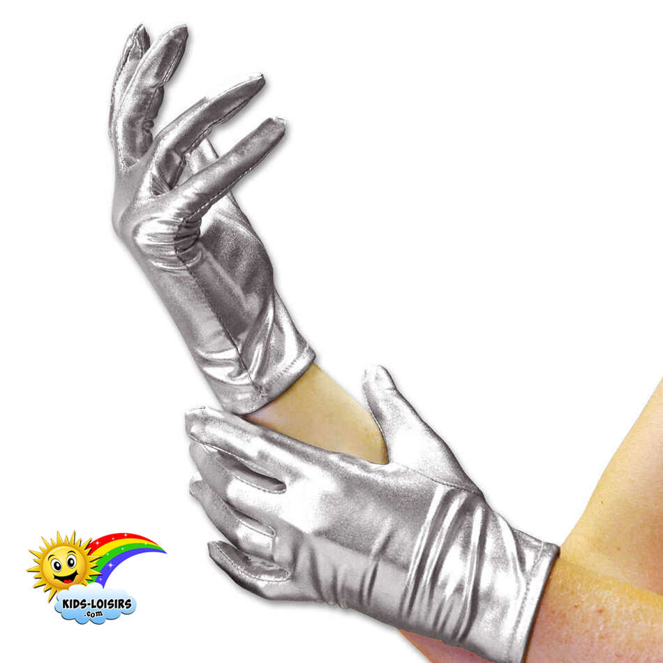 paire de gants argentés luxe brillants élastiques extensibles représentations spectacle magie magicien nol nouvel an prestidigitateur clown mime illusionniste assitante spectacle numéro scène artiste élégant accessoire de déguisement