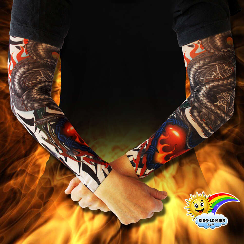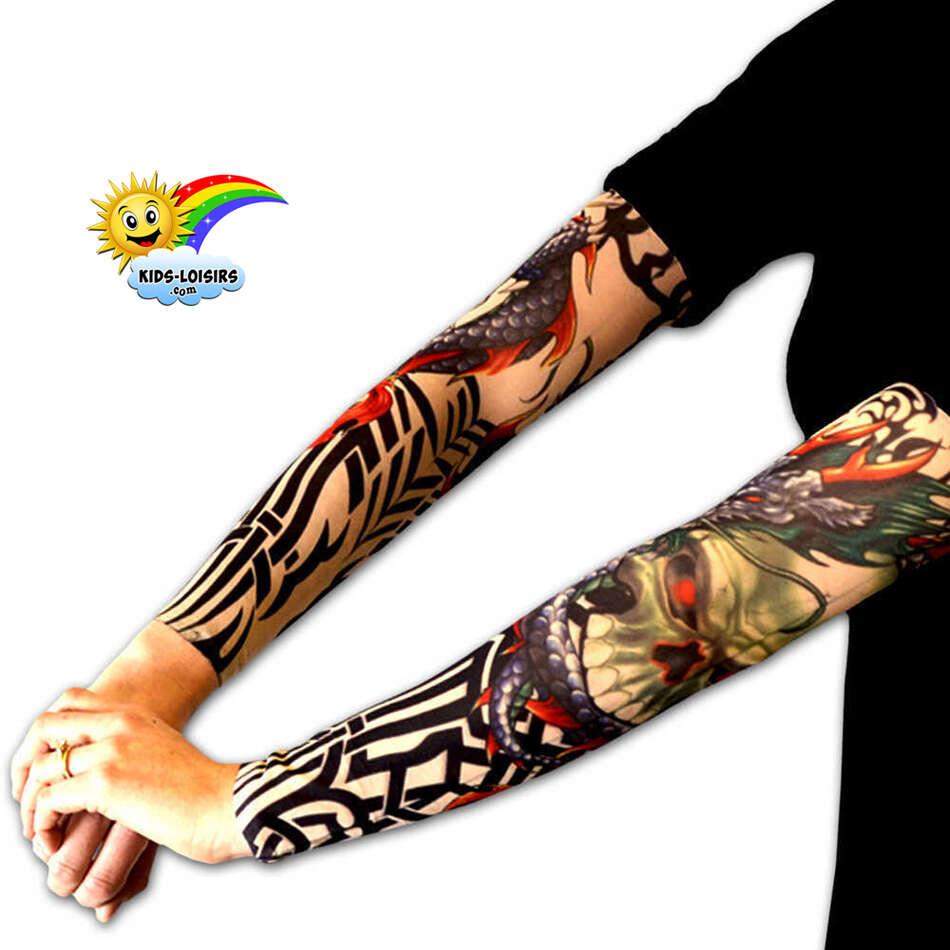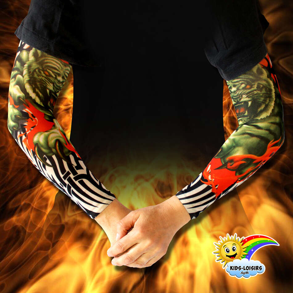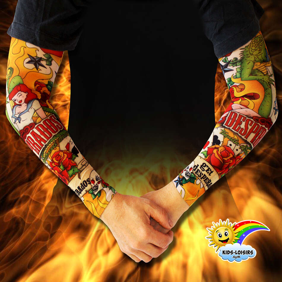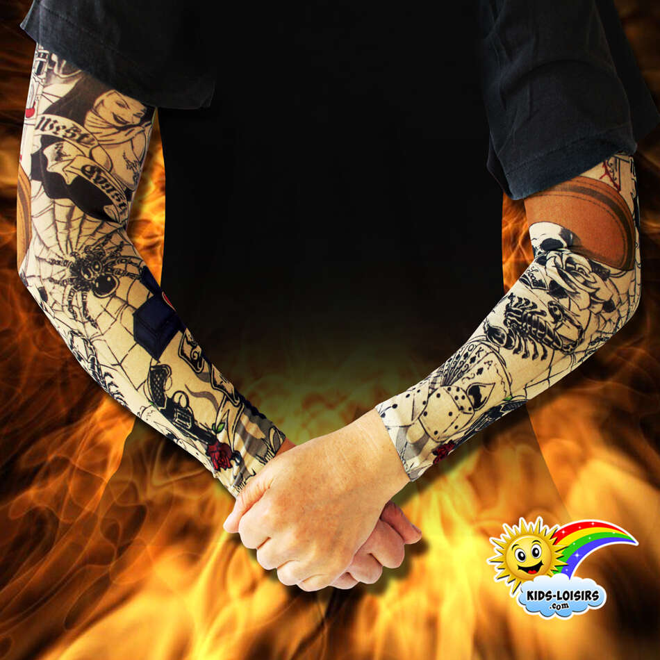 manches tatouages bras avant bras biceps impressionner bras tatoués tattoos tatoos peau manchettes élastique bas nylon gaine dur à cuire rebelle punk simuler illusion sensationnel biker taulard impressionnant accessoire de déguisement