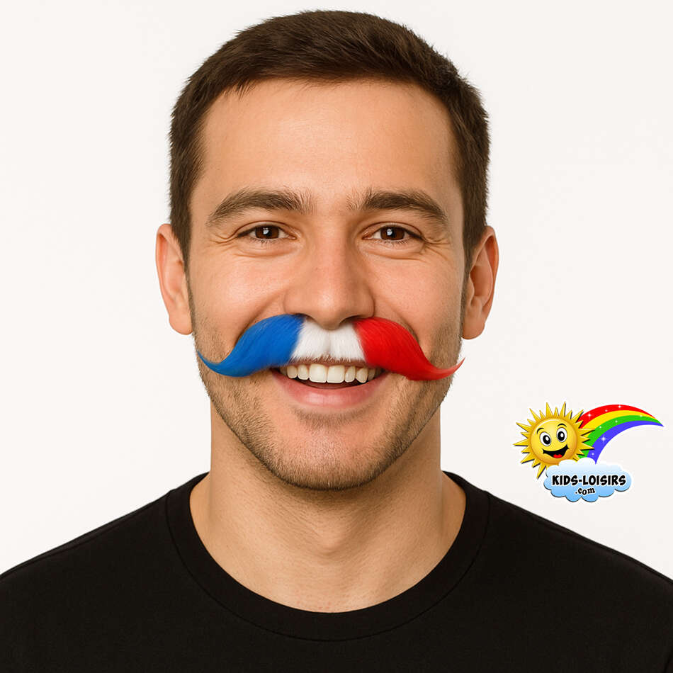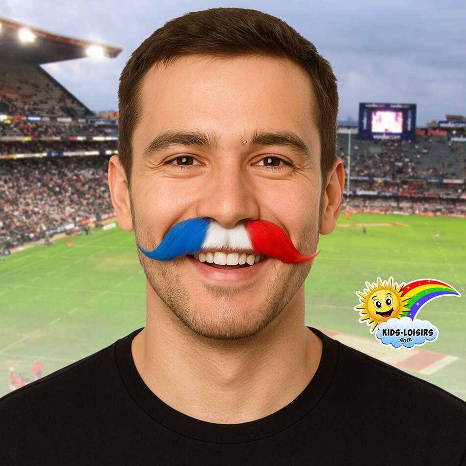 moustache de supporters tricolore drapeau bleu blanc rouge allez la france français match sport football rugby compétition équipe allez les bleus au stade dans les tribunes gaulois style gentleman couleurs poils poilu original accessoire de déguisement