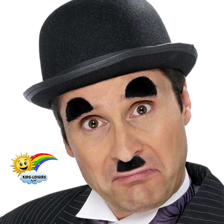 charlie chaplin déguisement de charlot fausse moustache adhésive autocollante sourcils postiche guignol clown amuseur rigolo les temps modernes le dictateur le kid les feux de la rampe comique burlesque belle époque 1900
