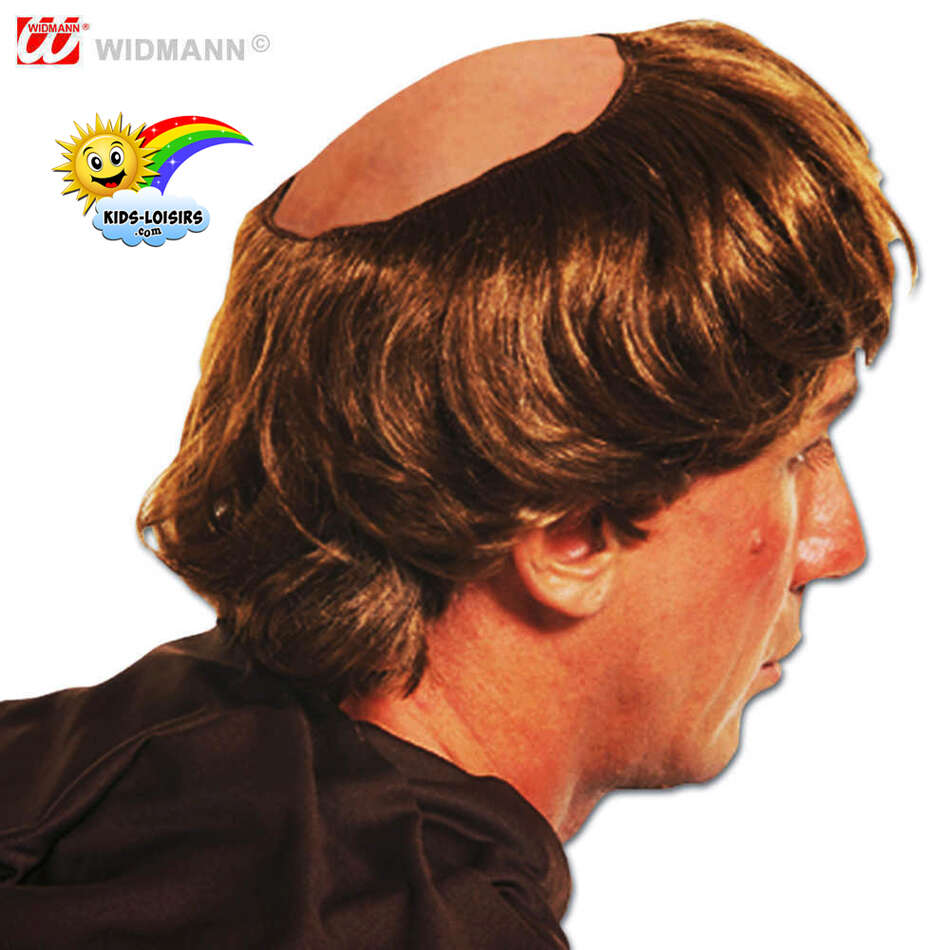 faux crâne de moine frère perruque tonsure cheveux châtains monastère abbaye postiche religion religieux coiffe déguisement se déguiser prières foi en dieu chrétien croyant catholique couvent crucifix aureole latin robe de bure église ermite Frère Tuck Chaussée aux Moines