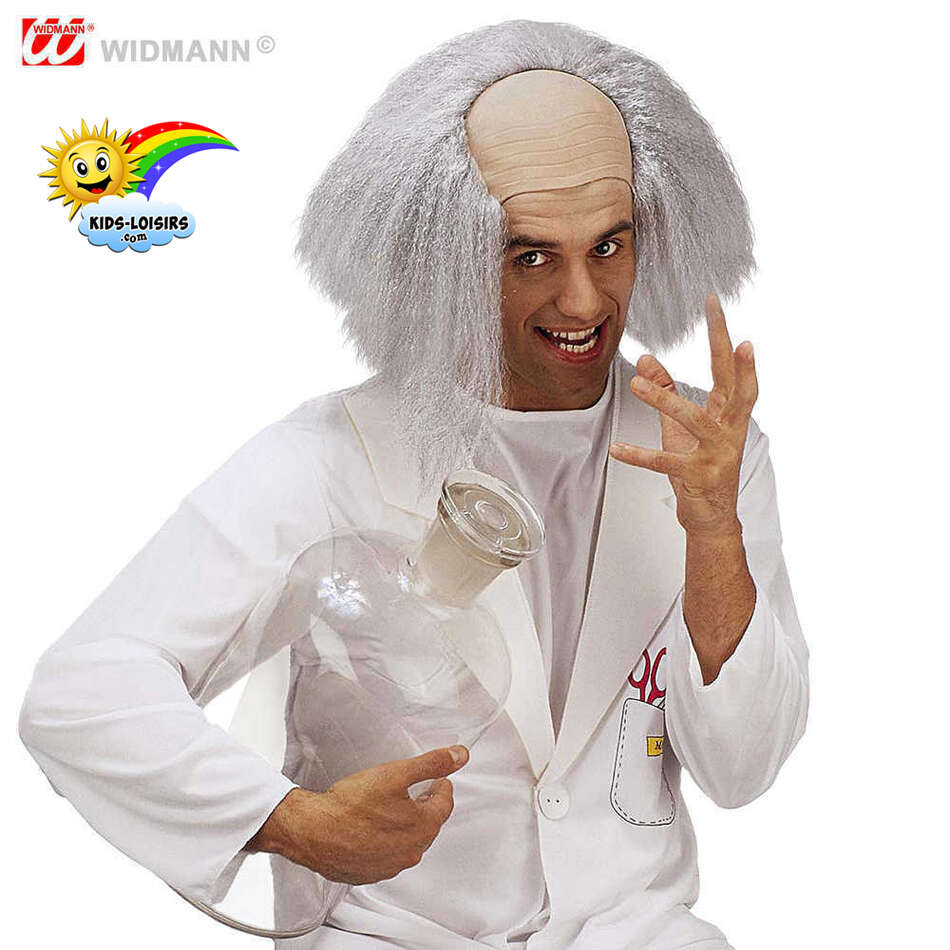 perruque savant fou crâne dégarni chauve albert einstein professeur scientifique inventeur génial le doc inventions chercheur physicien théorie théoricien e=mc2 cheveux chevelure postiche déguisement déguiser moumoute coiffure tignasse retour vers le futur docteur Emmett Brown Nom de Zeus ! Eurêka ! Par tous les pépins de la pomme de Newton ! Géo Trouvetou