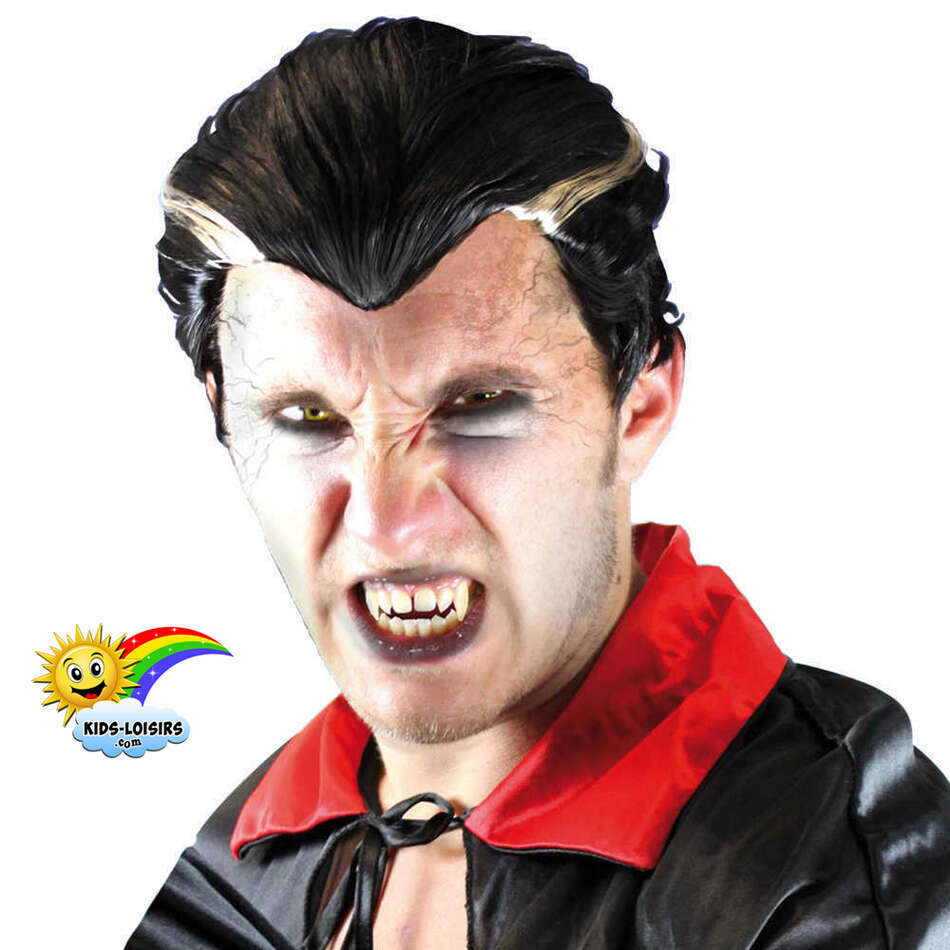 perruque de vampire comte dracula suceur de sang perruque brune à mèches blondes immortel postiche déguisement déguiser crucifix pieu ail eau bénite canines cercueil dents halloween twilight les cullen mode gothique
