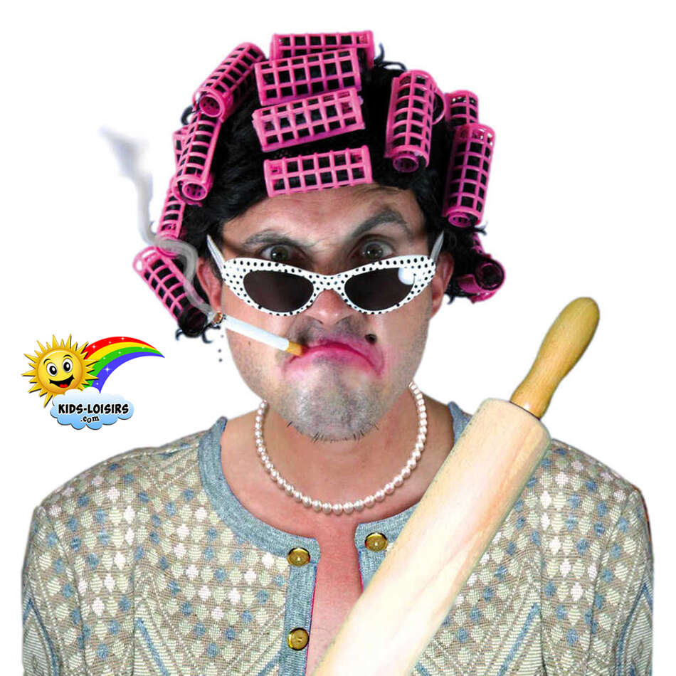 perruque josiane à bigoudis accessoire de déguisement mégère harpie vipère gendarme cheveux chevelure coiffure postiche capitaine maison commandant dominante concierge conchita vieille femme grognasse hargneuse mémère papillote rouleau peau de vache garce