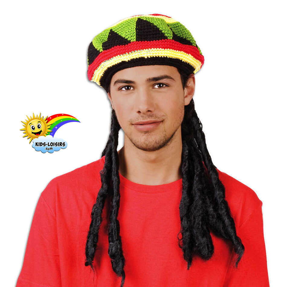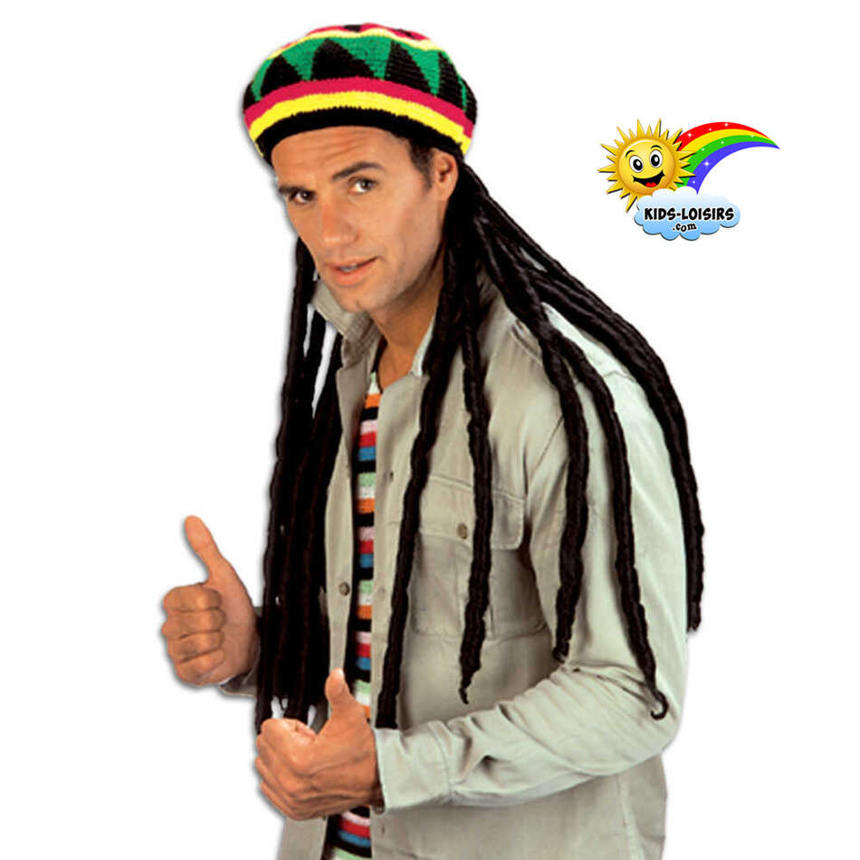 perruque à dread locks bonnet rasta dreadlocks rastaman cheveux moutonnés cool man cadenettes jamaïque doc gynéco se déguiser en noir accessoire de déguisement bob marley mouvement rastafari tignasse mal peigné joint cheveux en pétard