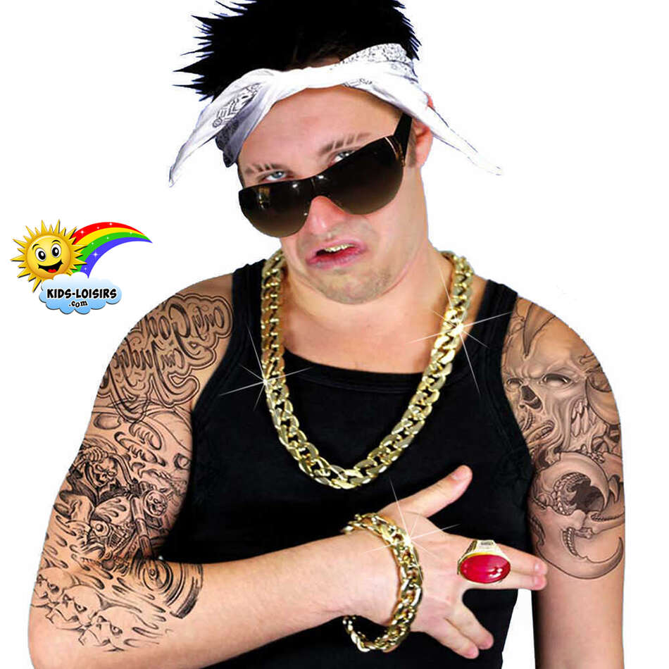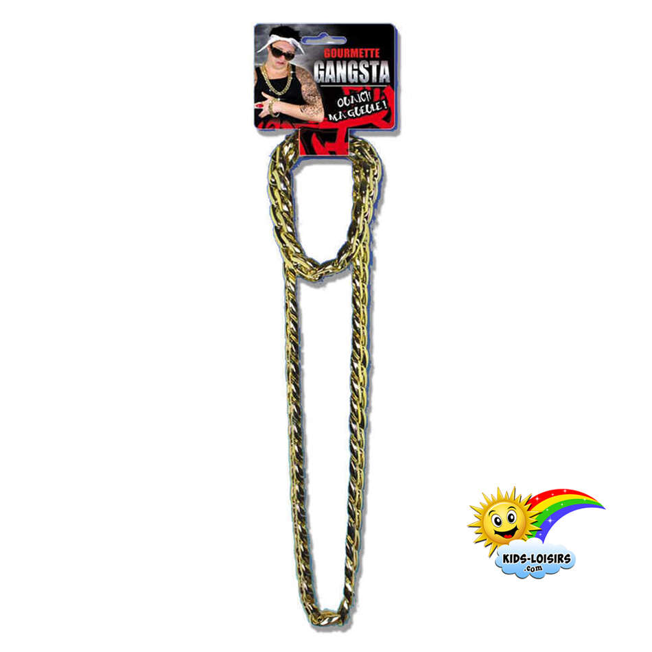 chaine gourmette dorées gangsta bad boy rappeur maillons bijoux pendentif breloques richesse carats énorme brillant briller bling bling accessoire de déguisement vip célèbre milliardaire millionnaire fortune style maquereau ringard Mister T Barracuda L’agence tous risques
